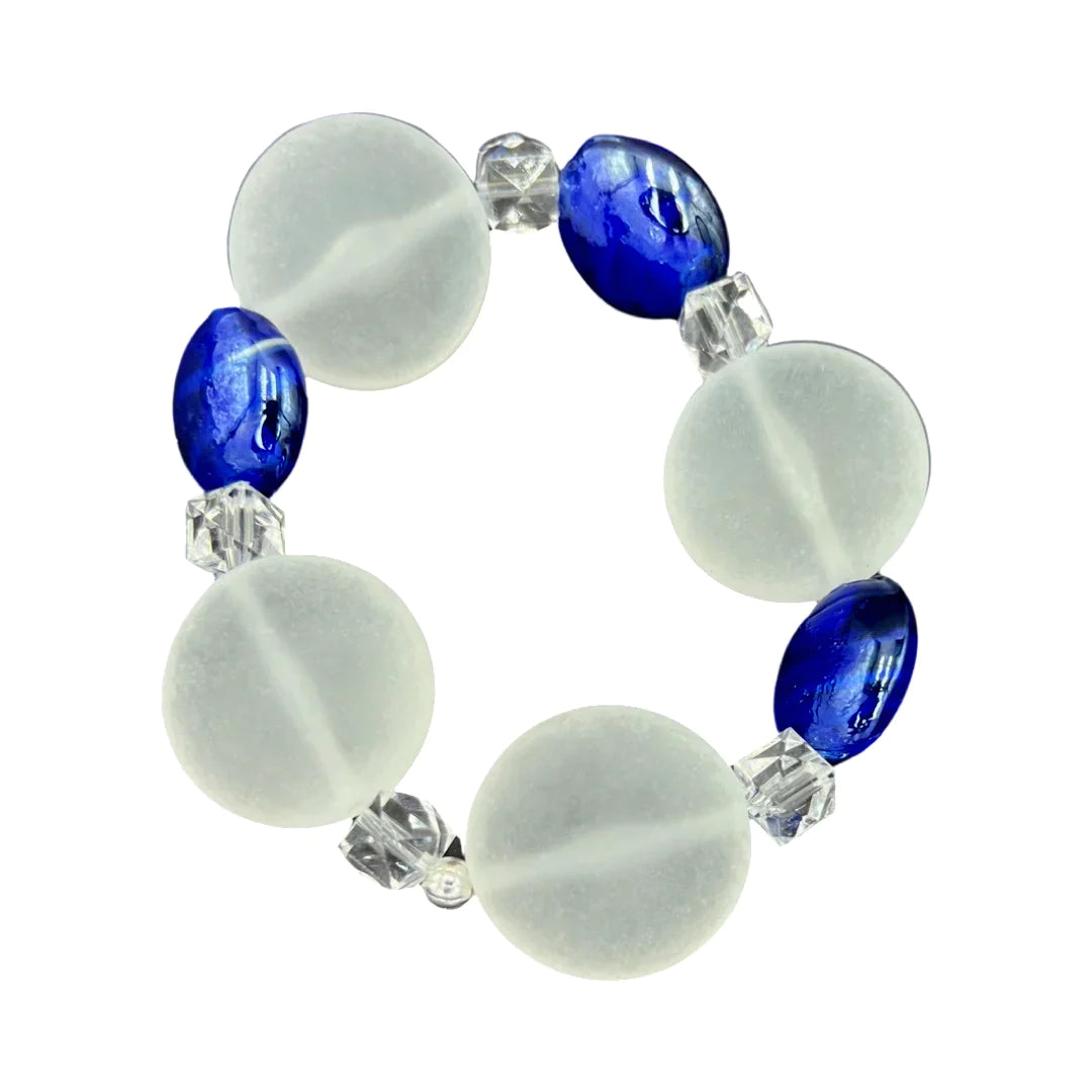 - Frosted Acrylic and Blue Glass Beaded Bracelet